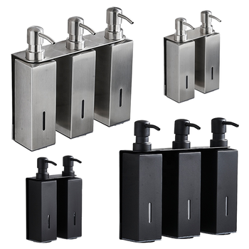 3-in-1壁マウント金属液体石鹸ディスペンサースクエアシャワーシャンプーディスペンサーバスルーム用窓付きカスタマイズ可能